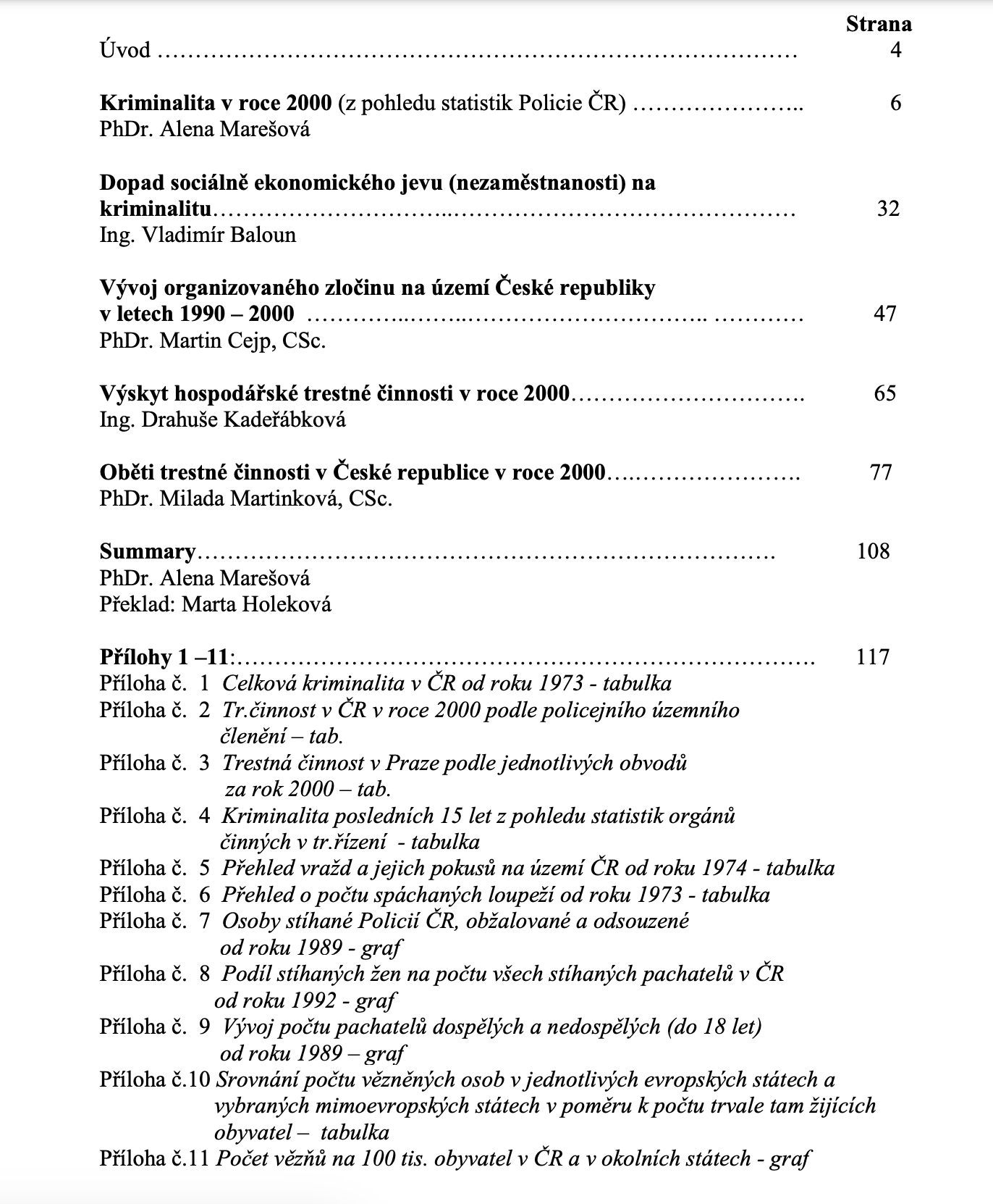 Marešová, A., Baloun, V., Cejp, M., Kadeřábková, D.(2001). Kriminalita v roce 2000. Praha: Institut pro kriminologii a sociální prevenci.